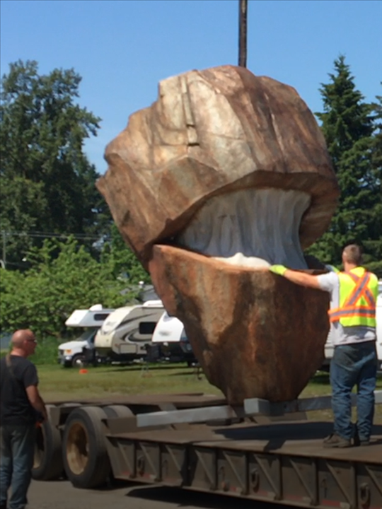 We were entrusted to create a monument to humankind's pursuit of the precious resources found deep within the earth and the impacts and consequences resulting from their extraction. It is an artistic showpiece and photo-op for the museum's outdoor exhibit terrace. A man cracks open a giant stone and reveals glistening, molten copper within. You are encouraged to push against the handprints on the opposite side to illustrate the delicate balance between humankind's need for resources and our relationship with nature. You two participants in the tableau pushing against each other dramatizes the differing opinions within our society regarding resource extraction, exploitation and the reclamation of land for nature.