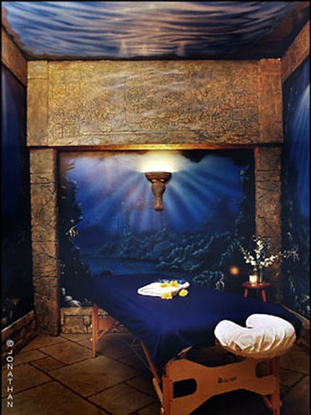 We collaborated with a team of spa professionals to design and bring to life their visions of a unique Mayan Temple themed spa experience. Working closely, we provided our clients with everything they required for their brand and establishment including the name, logo, interior design, furniture and cabinetry design, artwork design, project management, construction, fabrication, airbrushed murals, Mayan artifact/glyph/fresco replicas, faux finishing, woodworking, water feature, window treatments, and custom doors.